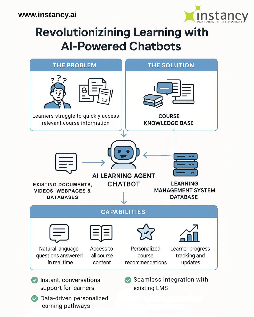 At Instancy, we have developed an AI Agent Learning Platform designed to empower organizations to embed these intelligent chatbots directly into their existing learning ecosystems. Our platform allows for quick deployment without disrupting current systems, enabling organizations to future-proof their learning strategies with powerful AI capabilities.